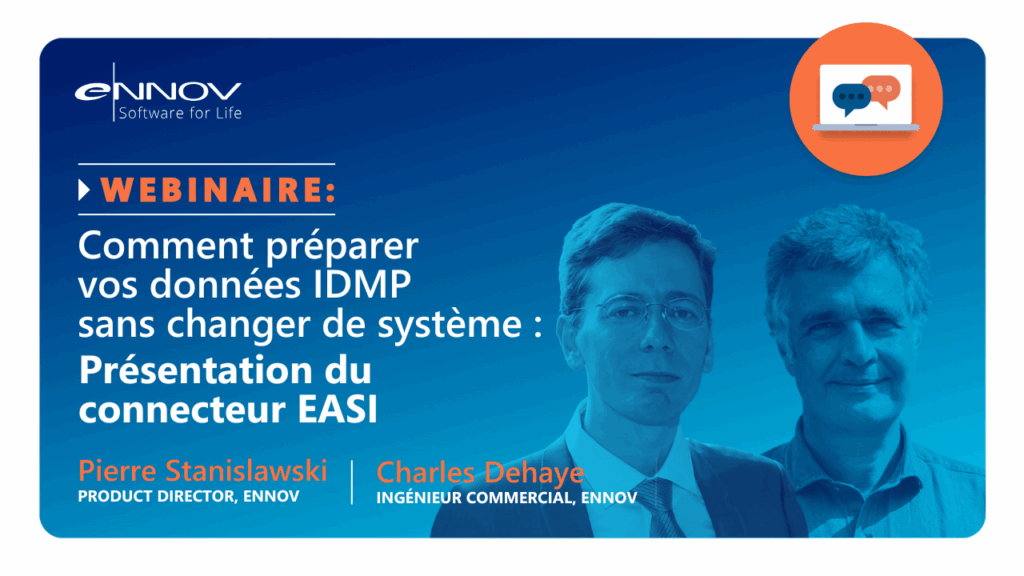 Rejoignez-nous pour découvrir EASI, la solution agnostique d’Ennov qui automatise l’extraction, la validation et la soumission des données IDMP, directement depuis votre environnement actuel.
